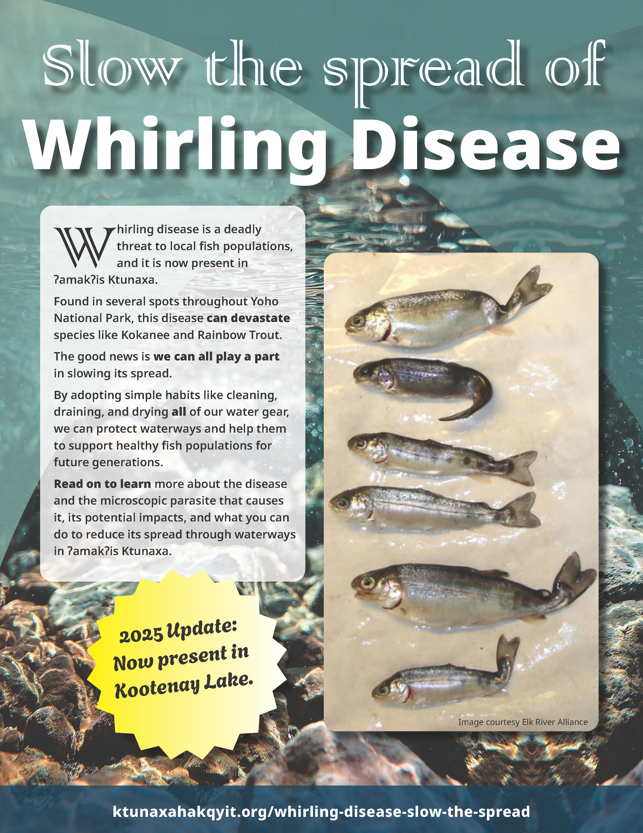 Visit elkriveralliance.ca/whirling-disease/ for the most up-to-date outreach info on whirling disease in ʔamakʔis Ktunaxa.